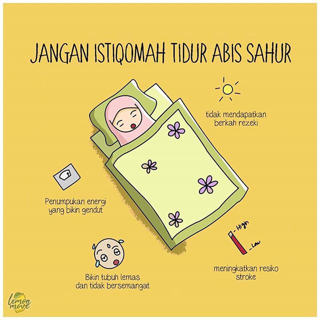 gituh guys bahaya tidur abis sahur dan abis subuh… hayoo yang Ramadhan cuma disi dengan bobok2 syantik… yakin tuh??? ntar tiba2 malaikat datang mau nyatat apa ??? org kitannya tidur mulu… wk jadi dilewatin deh sama malaikat… sayang kan??? … yook bangun kebiasaan baik dari sekarang, selagi muda… ayo buat perubahan dari kamar kalian wkwkw *jadi mulai hari ini jangan tidur setelah subuh atau setelh sahur ya guys.. semoga bermanfaat 🙂